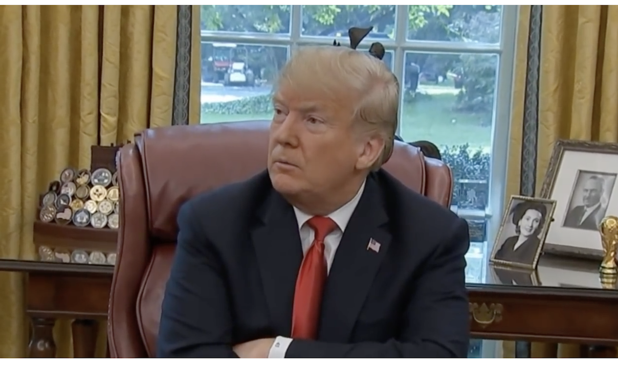 ونلاحظ انلغة الجسد للرئيس ترامب في معظم اللقاءت كانت دائماً كمن يريد ان يعزل نفسه عن ما يقال او ما يُسآل عنه